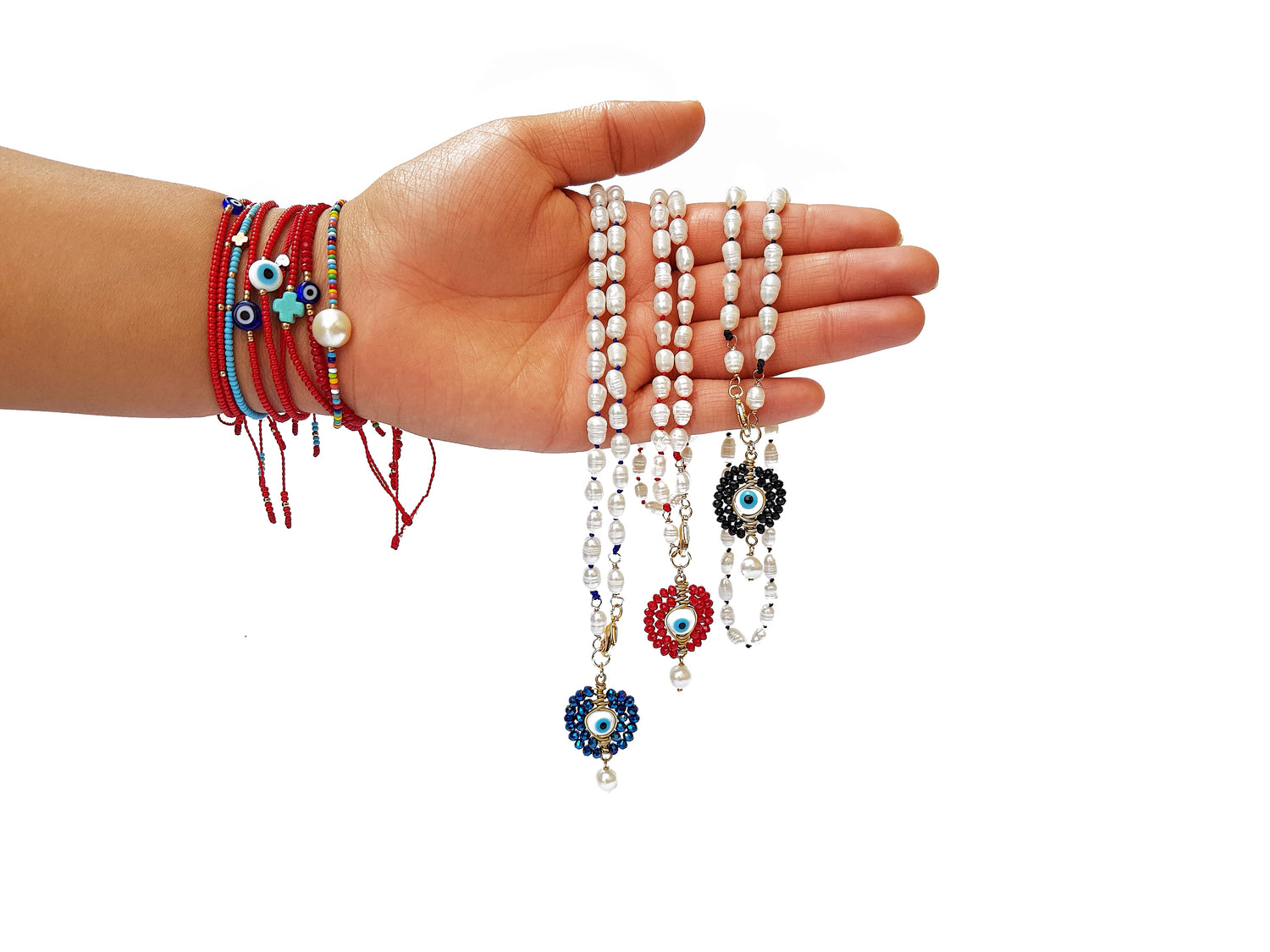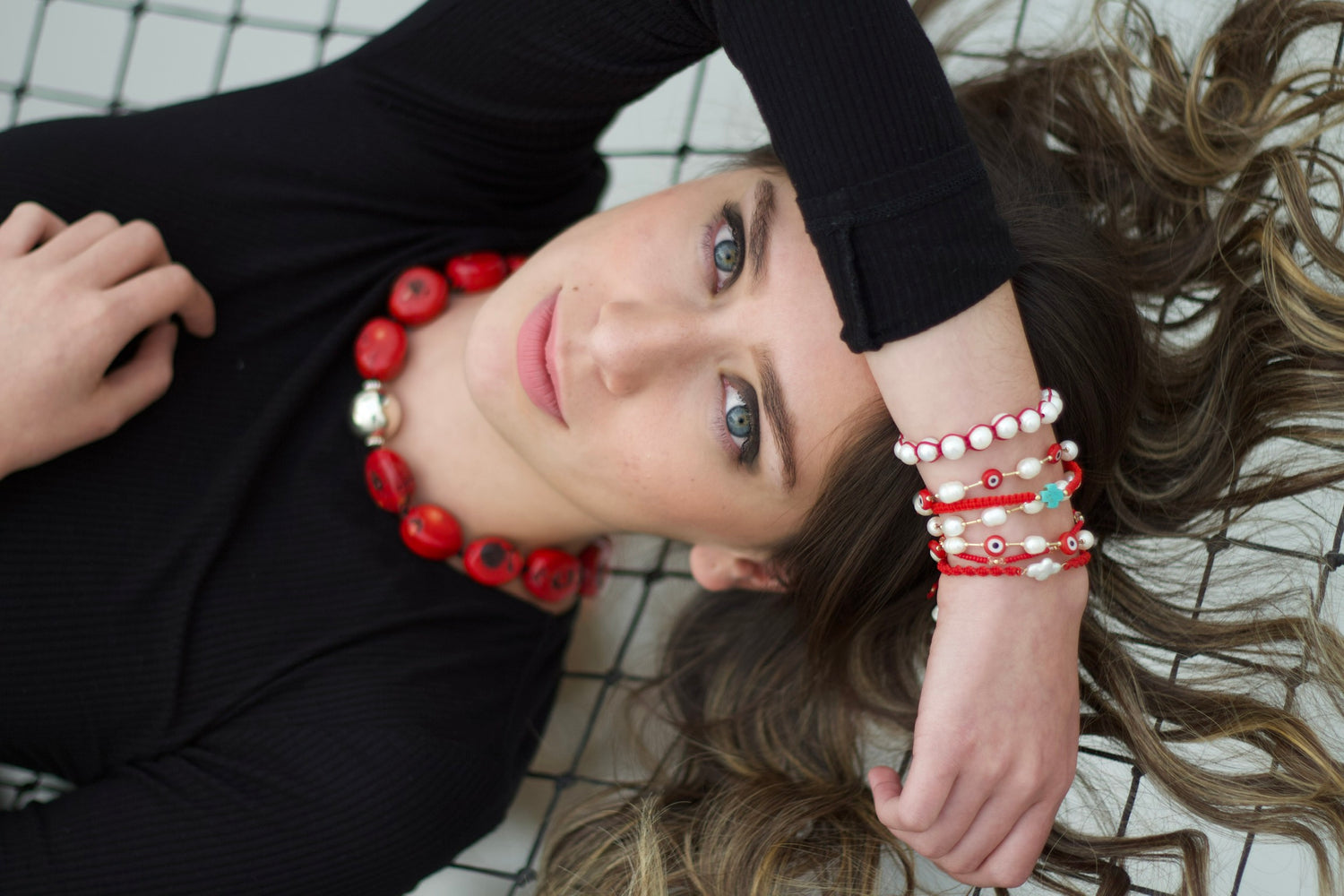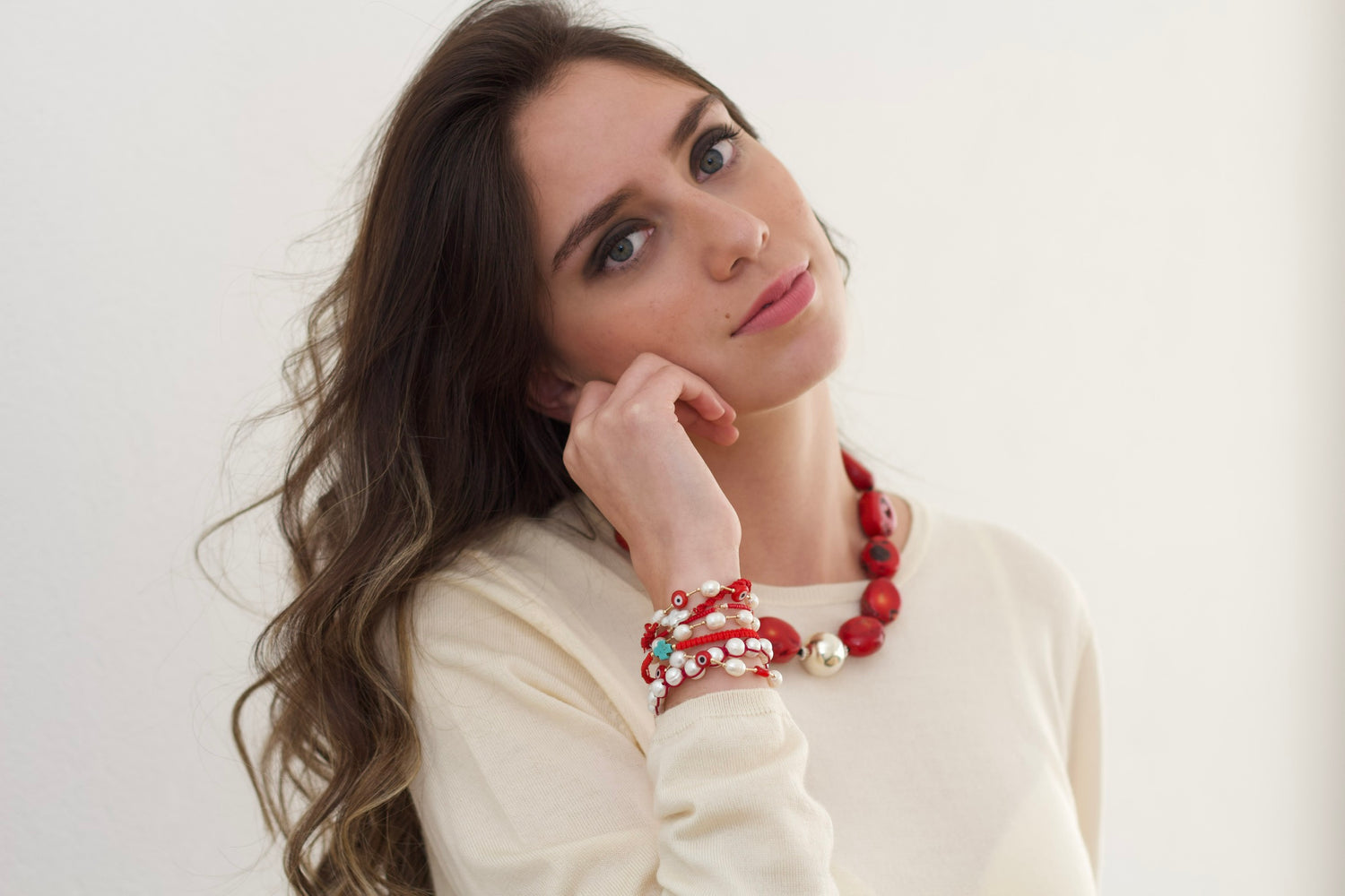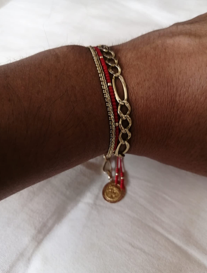 -Servando EscobedoPulsera roja con puntos de oro"Le da un buen toque a mi conjunto, es pequeña elegante."
