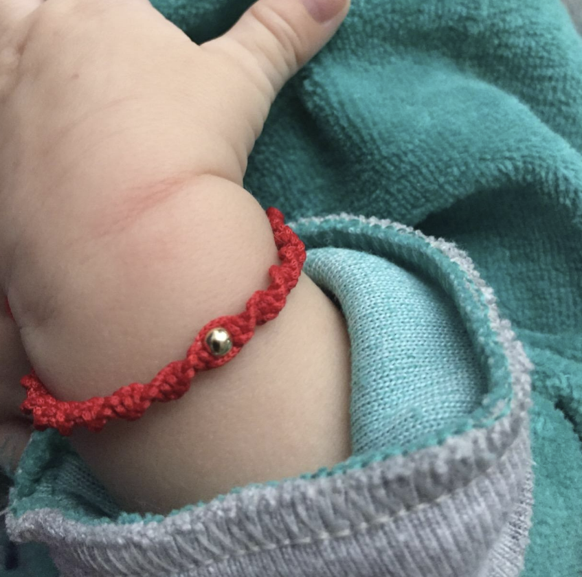 -Muy bonita pulseraPulsera new born con punto de oro"Está muy bonita, súper bien hecha, le material es un poco rígido, pero se ve que resistirá bastante. La única recomendación es incluir alguna explicación del significado tanto de la pulsera como del punto de oro, ya que el paquete es bonito para regalar."