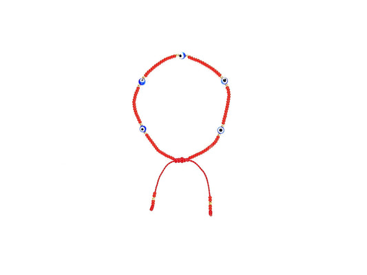 Pulsera Roja De Protección Con Ojos Turcos Azules