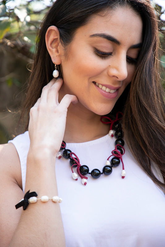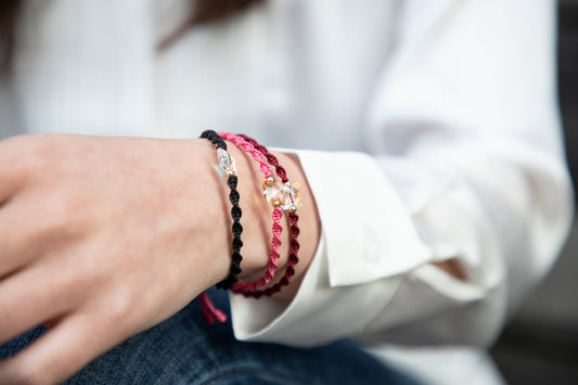 Pulsera Negra Tejida Con Mariposa De Cristal Austriaco