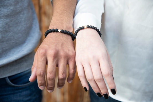 Juego De Pulseras De Piedra Volcánica Con Cruz De Hematitas Para Parejas
