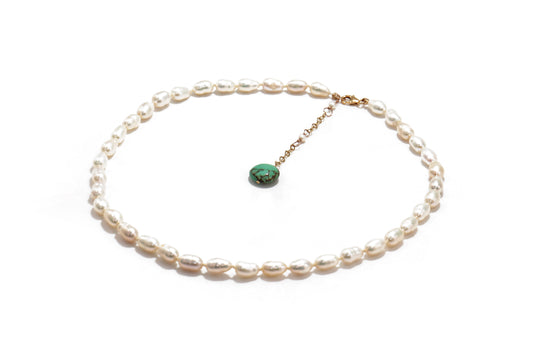 Gargantilla perla irregular con cristal austriaco y colgante al centro