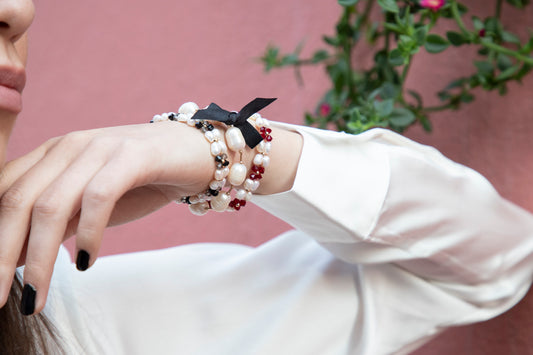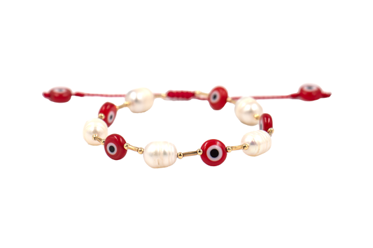 Pulsera de Protección con Perlas y Ojos Turcos Rojos