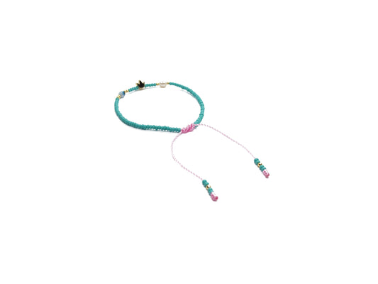 Pulsera De Cristales Negro Acerina Con Perla Y Turquesa