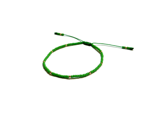 Pulsera Verde De Protección Con Puntos De Oro