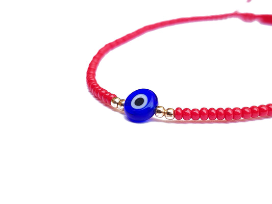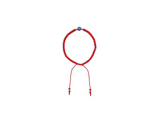 Pulsera Cristal Rojo con Ojo Turco Azul