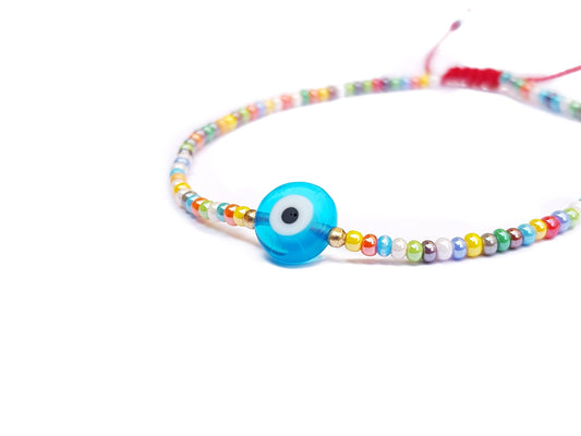 Pulsera De Protección Multicolor Con Ojo Turco Azul Cielo