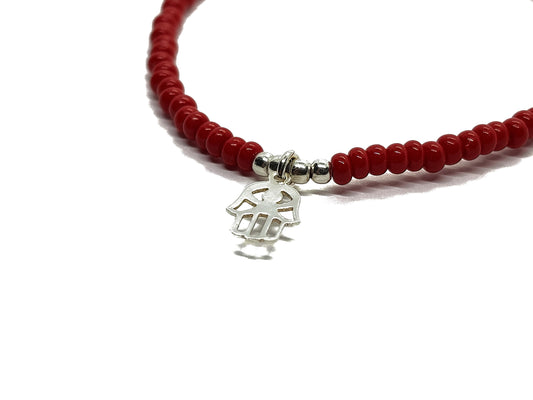 Pulsera Roja De Protección Con Mano De Fátima De Plata