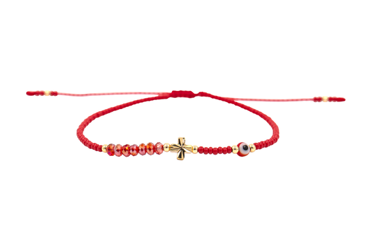 Pulsera Cabalística Roja con Cruz, Cristales y Ojo Turco