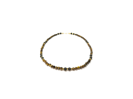 Collar Ojo De Tigre Con Piedra Volcánica, Hematita Y Oro
