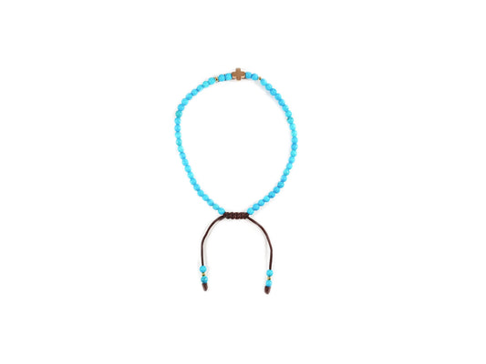 Pulsera De Turquesa Con Cruz De Hematita Dorada