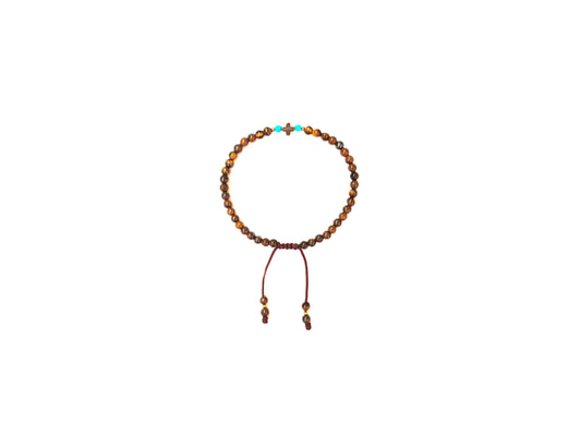 Pulsera De Ojo De Tigre Con Cruz De Hematita Dorada