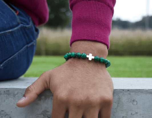 Pulsera De Protección Con Perlas Y Cruz De Hematita